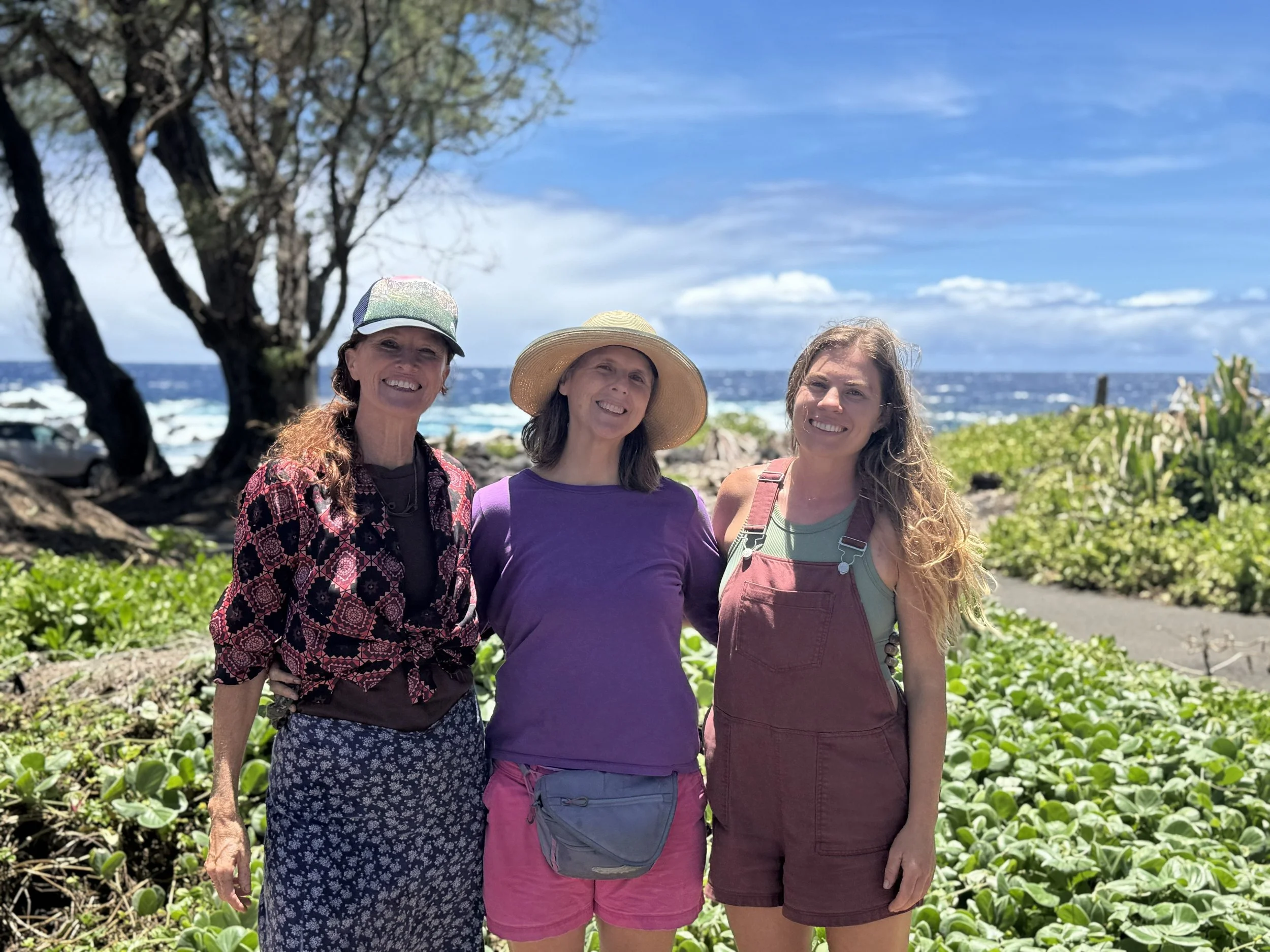 In 2021, on the heels of Covid 19 and the wildfires in California, Nora loaded up her trailer and dog, Handsome, and headed for the Big Island to have time with her mother, Kimball. Kimball had been living off-grid along the Hāmākua coast since 2000 planting trees, wrangling horses, shearing sheep, with too many ducks, generally being in awe of the beauty that is this island. This is where Nora has been learning how to compost, grow food, and maintain small engines for the past four years, following in the footsteps of her mother.